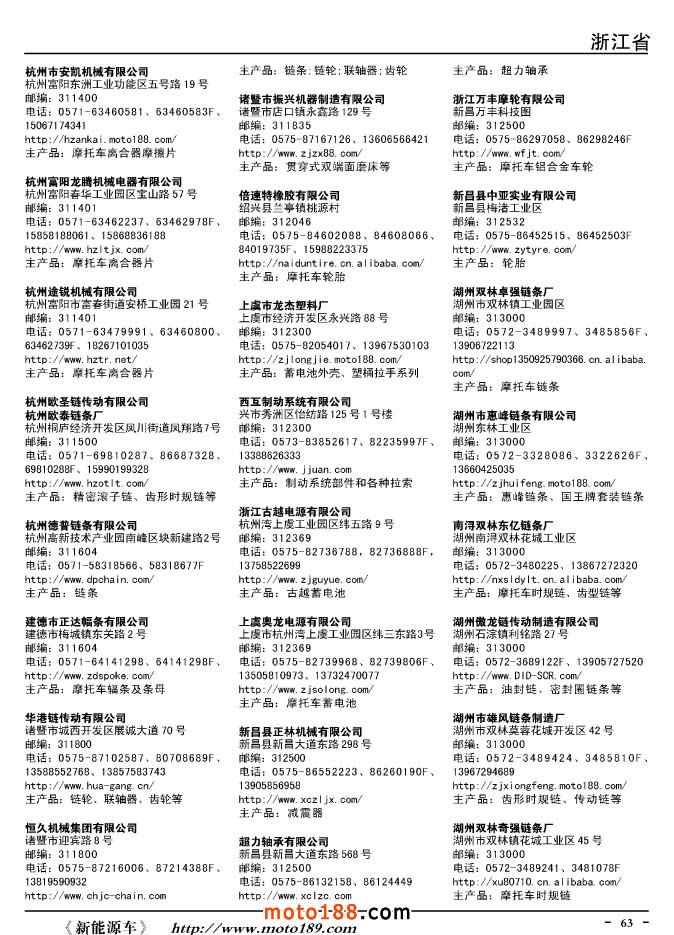 這兩年行業調整力度非常大,為了確保我們提供的信息準確性,我們本著寧缺毋濫的原則,不去圖虛的數量。目前摩托車與配件行業的不少經銷商是跨行業經營的,所以我們在本書中增加了部分摩托車整車廠、電動車生產廠、機動三輪車制造廠。所選的這些企業都是這個行業具有影響力的品牌企業,是為了大家在使用這本書時,獲取相關的延伸產業更多的實用信息。