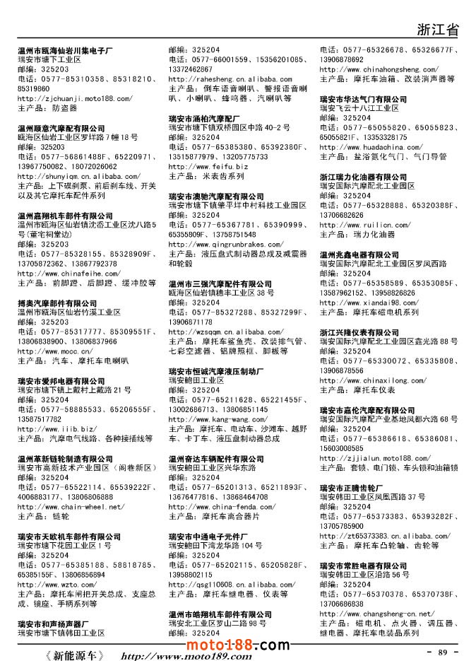 這兩年行業調整力度非常大,為了確保我們提供的信息準確性,我們本著寧缺毋濫的原則,不去圖虛的數量。目前摩托車與配件行業的不少經銷商是跨行業經營的,所以我們在本書中增加了部分摩托車整車廠、電動車生產廠、機動三輪車制造廠。所選的這些企業都是這個行業具有影響力的品牌企業,是為了大家在使用這本書時,獲取相關的延伸產業更多的實用信息。