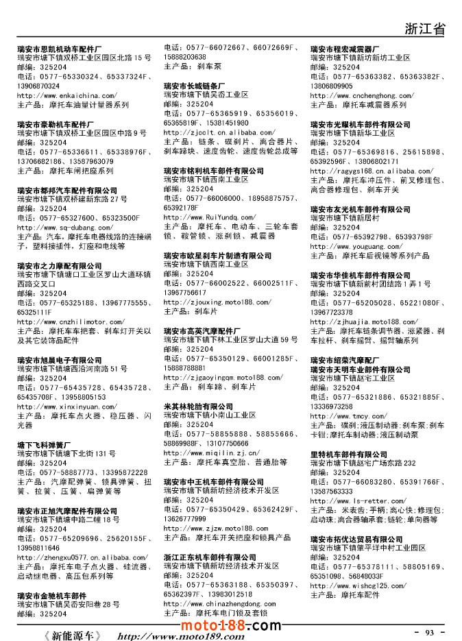 這兩年行業調整力度非常大,為了確保我們提供的信息準確性,我們本著寧缺毋濫的原則,不去圖虛的數量。目前摩托車與配件行業的不少經銷商是跨行業經營的,所以我們在本書中增加了部分摩托車整車廠、電動車生產廠、機動三輪車制造廠。所選的這些企業都是這個行業具有影響力的品牌企業,是為了大家在使用這本書時,獲取相關的延伸產業更多的實用信息。