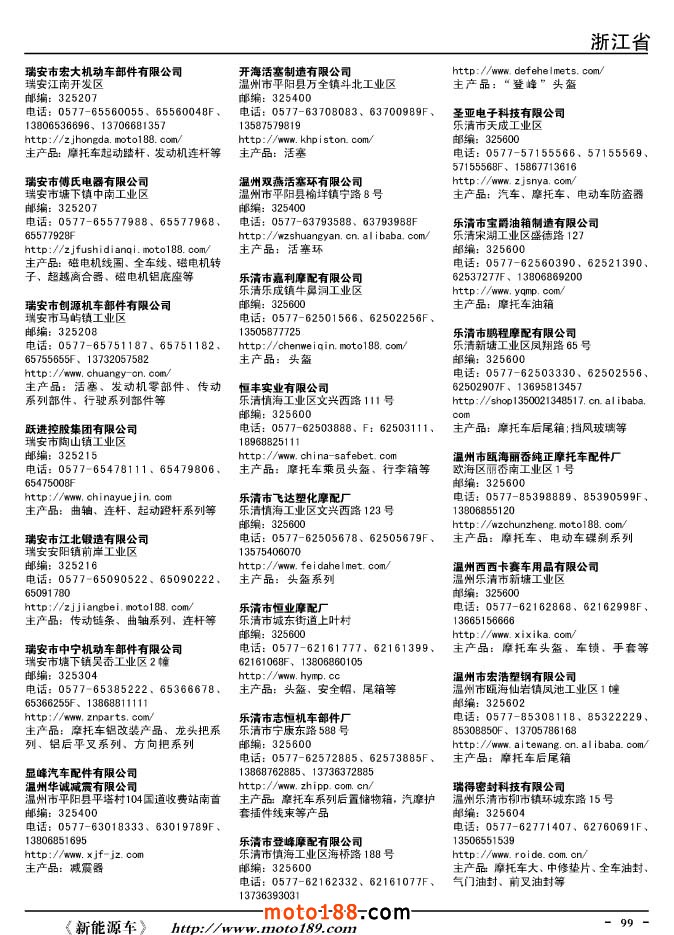 這兩年行業(yè)調(diào)整力度非常大,為了確保我們提供的信息準(zhǔn)確性,我們本著寧缺毋濫的原則,不去圖虛的數(shù)量。目前摩托車與配件行業(yè)的不少經(jīng)銷商是跨行業(yè)經(jīng)營的,所以我們在本書中增加了部分摩托車整車廠、電動車生產(chǎn)廠、機動三輪車制造廠。所選的這些企業(yè)都是這個行業(yè)具有影響力的品牌企業(yè),是為了大家在使用這本書時,獲取相關(guān)的延伸產(chǎn)業(yè)更多的實用信息。
