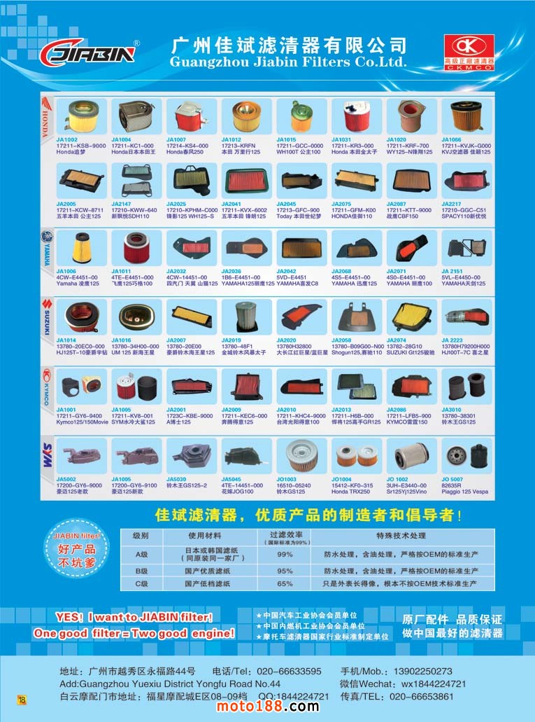 這兩年行業調整力度非常大,為了確保我們提供的信息準確性,我們本著寧缺毋濫的原則,不去圖虛的數量。目前摩托車與配件行業的不少經銷商是跨行業經營的,所以我們在本書中增加了部分摩托車整車廠、電動車生產廠、機動三輪車制造廠。所選的這些企業都是這個行業具有影響力的品牌企業,是為了大家在使用這本書時,獲取相關的延伸產業更多的實用信息。