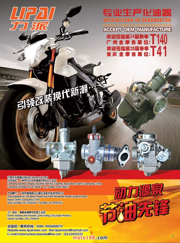 這兩年行業調整力度非常大,為了確保我們提供的信息準確性,我們本著寧缺毋濫的原則,不去圖虛的數量。目前摩托車與配件行業的不少經銷商是跨行業經營的,所以我們在本書中增加了部分摩托車整車廠、電動車生產廠、機動三輪車制造廠。所選的這些企業都是這個行業具有影響力的品牌企業,是為了大家在使用這本書時,獲取相關的延伸產業更多的實用信息。