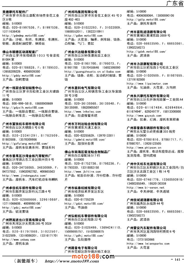 這兩年行業(yè)調(diào)整力度非常大,為了確保我們提供的信息準(zhǔn)確性,我們本著寧缺毋濫的原則,不去圖虛的數(shù)量。目前摩托車與配件行業(yè)的不少經(jīng)銷商是跨行業(yè)經(jīng)營(yíng)的,所以我們?cè)诒緯性黾恿瞬糠帜ν熊囌噺S、電動(dòng)車生產(chǎn)廠、機(jī)動(dòng)三輪車制造廠。所選的這些企業(yè)都是這個(gè)行業(yè)具有影響力的品牌企業(yè),是為了大家在使用這本書時(shí),獲取相關(guān)的延伸產(chǎn)業(yè)更多的實(shí)用信息。