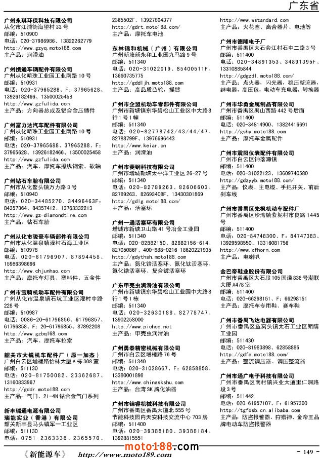 這兩年行業(yè)調(diào)整力度非常大,為了確保我們提供的信息準(zhǔn)確性,我們本著寧缺毋濫的原則,不去圖虛的數(shù)量。目前摩托車與配件行業(yè)的不少經(jīng)銷商是跨行業(yè)經(jīng)營的,所以我們?cè)诒緯性黾恿瞬糠帜ν熊囌噺S、電動(dòng)車生產(chǎn)廠、機(jī)動(dòng)三輪車制造廠。所選的這些企業(yè)都是這個(gè)行業(yè)具有影響力的品牌企業(yè),是為了大家在使用這本書時(shí),獲取相關(guān)的延伸產(chǎn)業(yè)更多的實(shí)用信息。