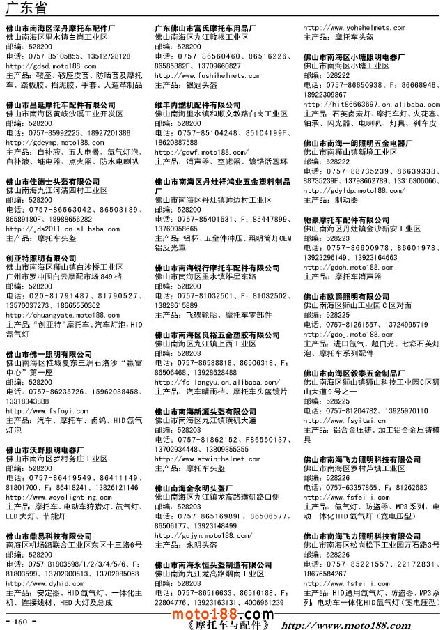 這兩年行業調整力度非常大,為了確保我們提供的信息準確性,我們本著寧缺毋濫的原則,不去圖虛的數量。目前摩托車與配件行業的不少經銷商是跨行業經營的,所以我們在本書中增加了部分摩托車整車廠、電動車生產廠、機動三輪車制造廠。所選的這些企業都是這個行業具有影響力的品牌企業,是為了大家在使用這本書時,獲取相關的延伸產業更多的實用信息。