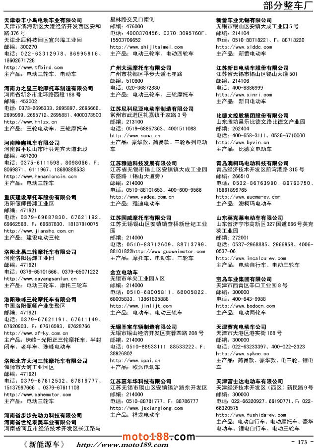 這兩年行業調整力度非常大,為了確保我們提供的信息準確性,我們本著寧缺毋濫的原則,不去圖虛的數量。目前摩托車與配件行業的不少經銷商是跨行業經營的,所以我們在本書中增加了部分摩托車整車廠、電動車生產廠、機動三輪車制造廠。所選的這些企業都是這個行業具有影響力的品牌企業,是為了大家在使用這本書時,獲取相關的延伸產業更多的實用信息。