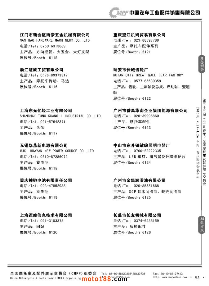 ”全國摩托車及配件展示會“(CMPF)是中國摩托車行業的傳統盛會,自1981年至今已成功舉辦了67季次(每年春、秋季各舉辦一次),現已發展成為行業內規模最大、專業觀眾最多、影響最廣泛、參展商最有收獲的全國性品牌展會。CMPF展會聚集了全國大部分摩托車配件生產企業與流通企業,是產需雙方進行貿易洽談、新產品技術推廣與交流的理想服務平臺。