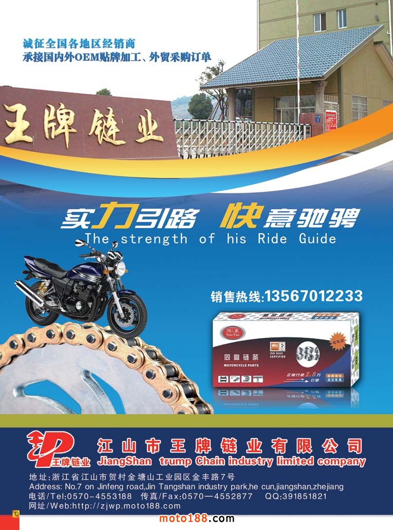年每月一期,月刊。目前摩托車配件行業雖然只剩我們一家雜志,行業形勢也每況愈下,但我們的印量、發行、價格等均保持不變。根據行業、市場的變化,在明年將增加對三輪車行業及電動車配件行業的信息發布。