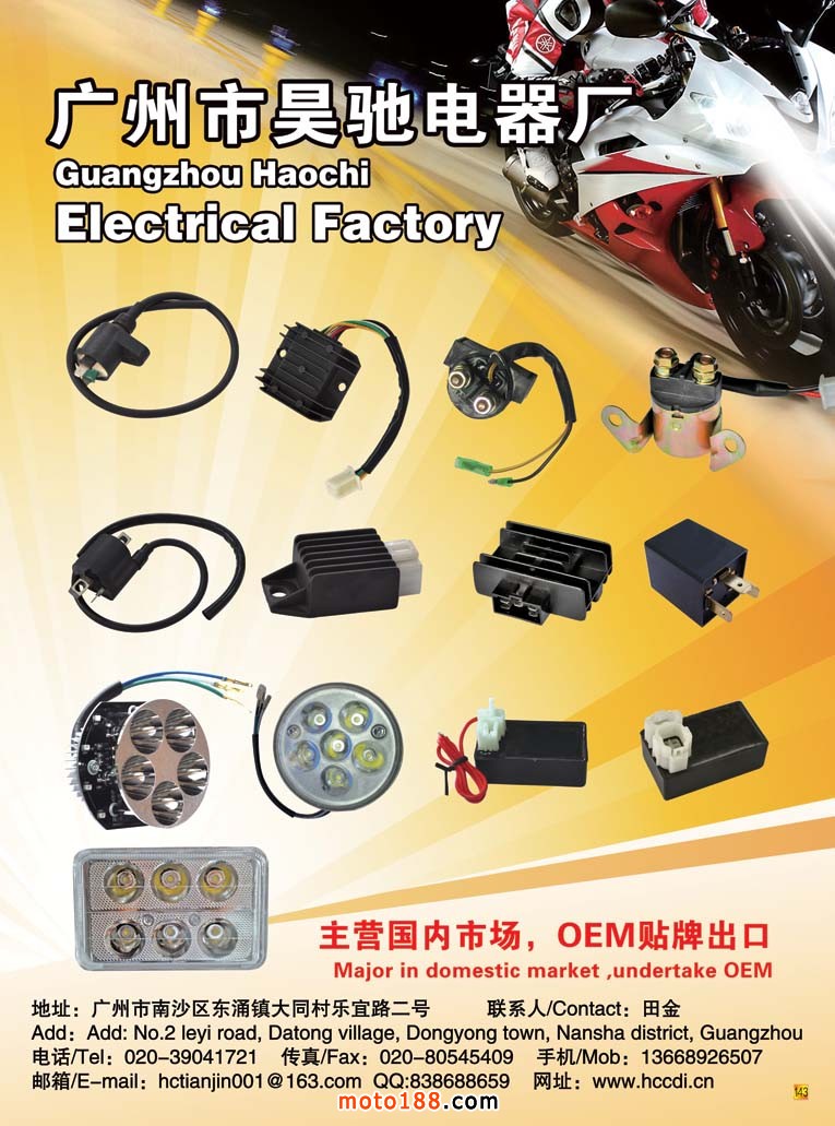 新版《中國摩托車配件市場指南·華南版》首發,廣州地區用中英文雙語出版,為外商使用此書提供便利。明年上半年全摩會在重慶召開,新版《中國摩托車市場指南·川渝版》廣告征集工作也已經開展,此書將在明年