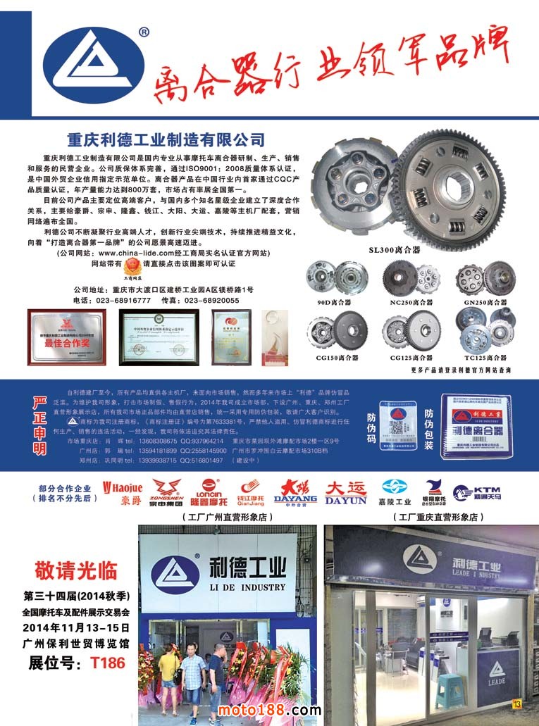 行業大型展會——第三十四屆秋季廣州全摩會會展期間,由于雜志廣告版面較多,原定出版的配件套缸專題和三輪車行業的相關信息專題移至下期出刊。