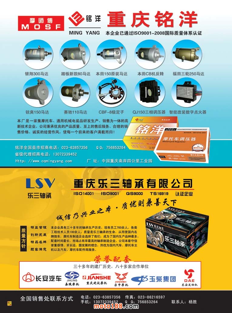新版《中國摩托車配件市場指南·華南版》首發(fā),廣州地區(qū)用中英文雙語出版,為外商使用此書提供便利。明年上半年全摩會在重慶召開,新版《中國摩托車市場指南·川渝版》廣告征集工作也已經(jīng)開展,此書將在明年