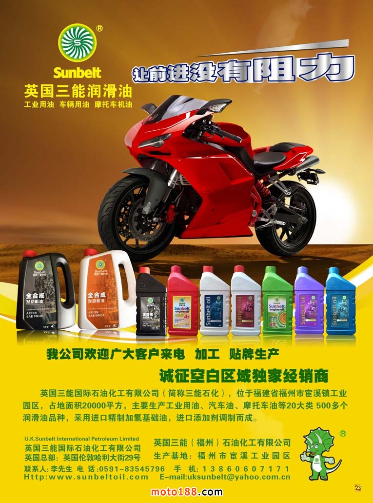 新版《中國摩托車配件市場指南·華南版》首發,廣州地區用中英文雙語出版,為外商使用此書提供便利。明年上半年全摩會在重慶召開,新版《中國摩托車市場指南·川渝版》廣告征集工作也已經開展,此書將在明年