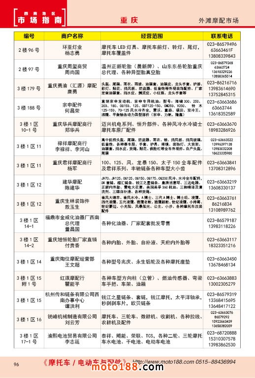 內96 重慶外灘摩配市場經銷商名錄