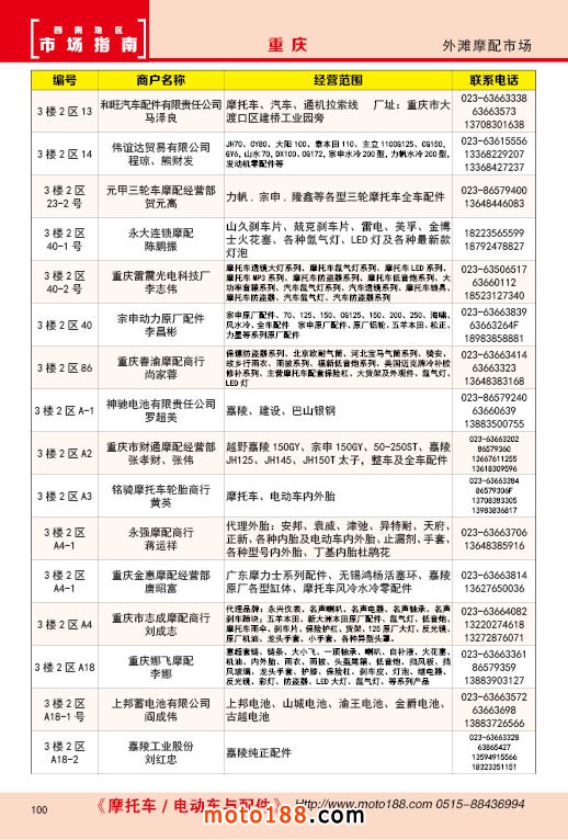 內100 重慶外灘摩配市場經銷商名錄