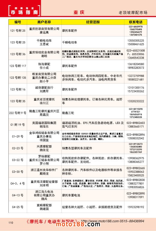 內110 高新區老頂坡摩配市場經銷商名錄