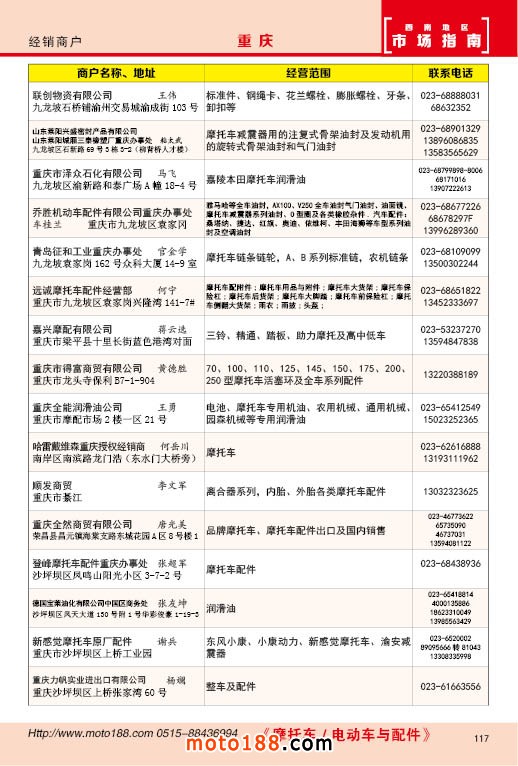 內117 重慶市摩托車配件經銷商戶