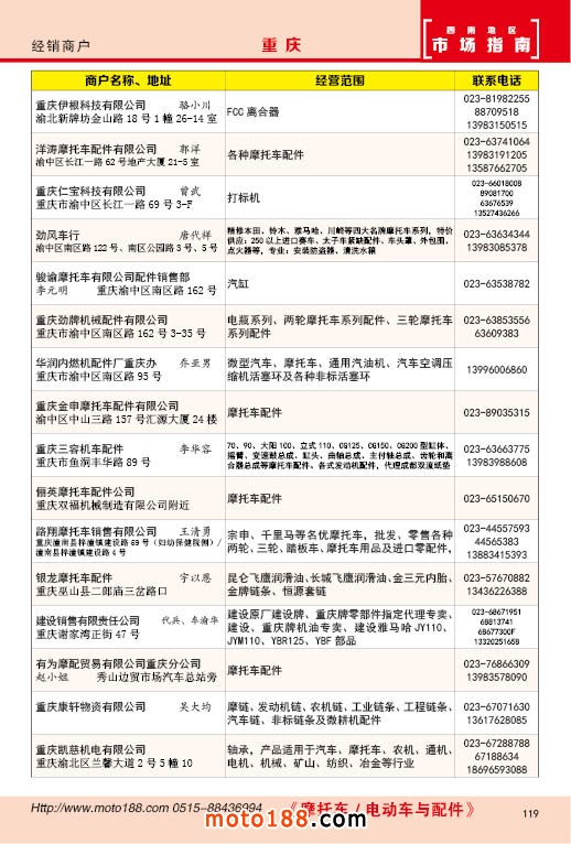 內119 重慶市摩托車配件經銷商戶