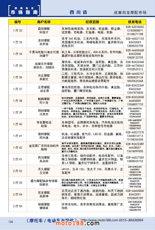 內126 成都劍龍摩配市場經銷商名錄