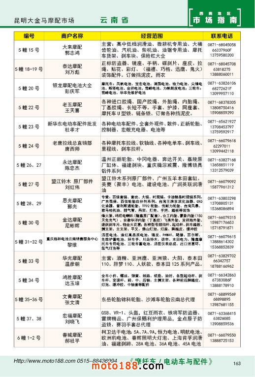 內163 昆明市大金馬摩配市場經銷商名錄