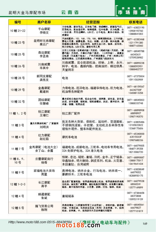 內169 昆明市大金馬摩配市場經銷商名錄