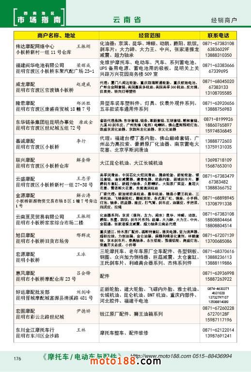 內176 云南省摩托車配件經銷商戶