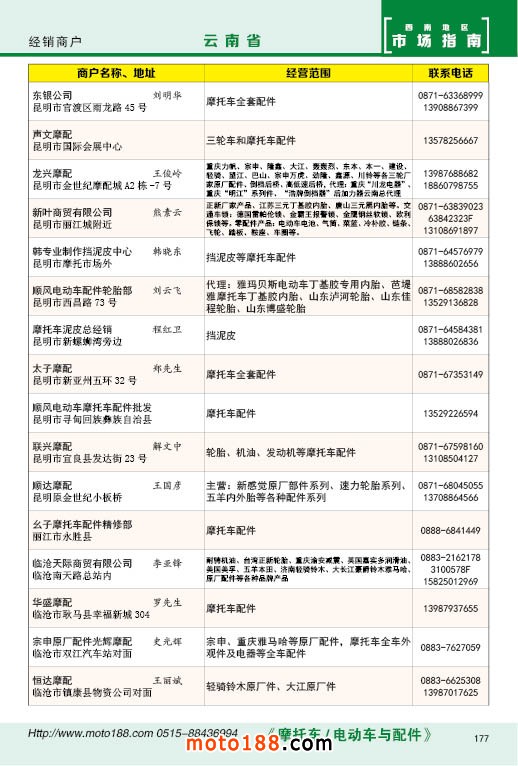 內177 云南省摩托車配件經銷商戶