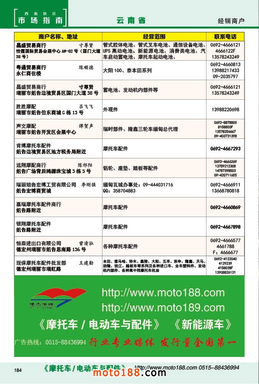 內184 云南省摩托車配件經銷商戶