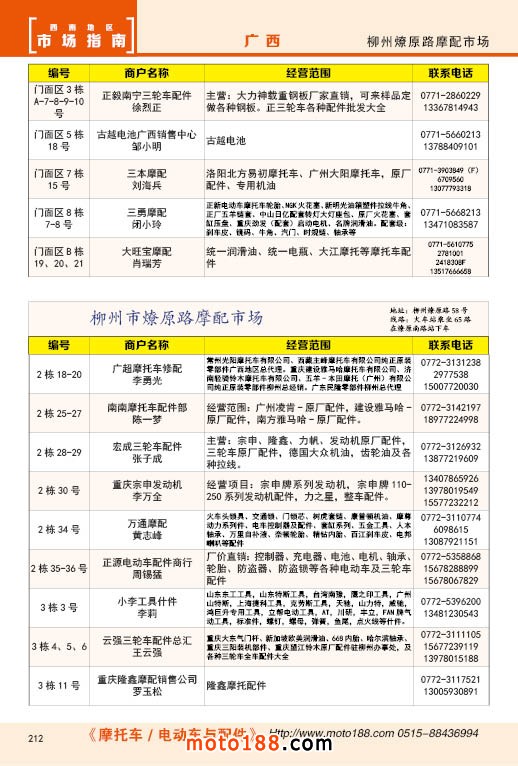 內(nèi)212 南寧金盈橋摩配市場經(jīng)銷商名錄內(nèi)212 柳州市燎原路摩配市場經(jīng)銷商名錄