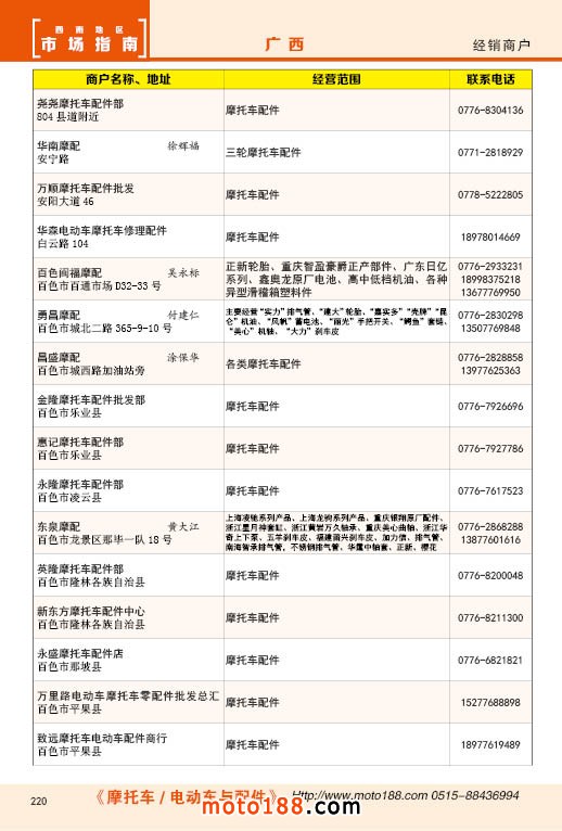 內220 廣西摩托車配件經銷商戶