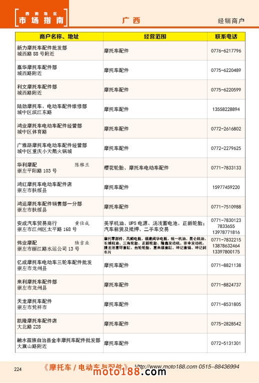 內224 廣西摩托車配件經銷商戶