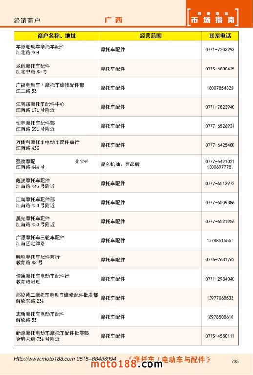 內(nèi)235 廣西摩托車配件經(jīng)銷商戶