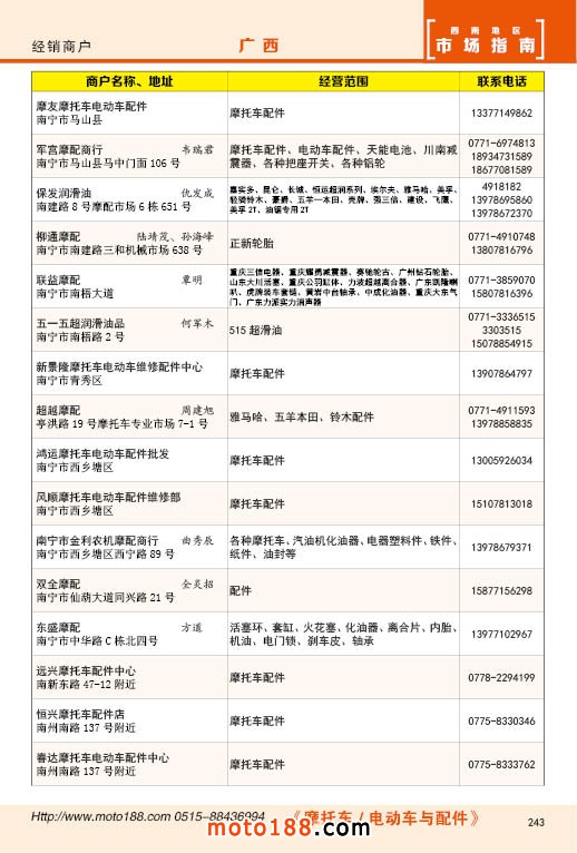 內(nèi)243 廣西摩托車配件經(jīng)銷商戶