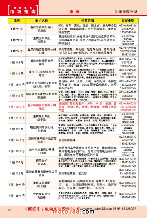 內(nèi)62 重慶外灘摩配市場經(jīng)銷商名錄