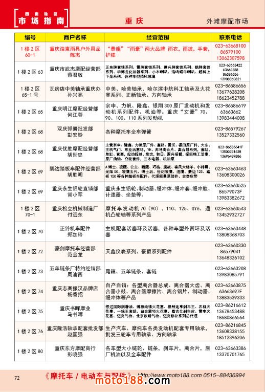 內(nèi)72 重慶外灘摩配市場經(jīng)銷商名錄