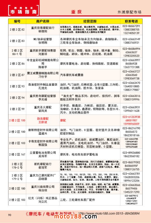 內90 重慶外灘摩配市場經銷商名錄
