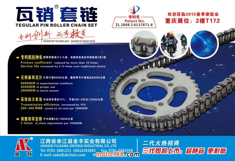 2015年的春天姍姍來遲,行業的盛會卻已盛裝已待。今春我們聚集在中國也是世界最大的摩托車配件生產基地重慶。目前行業形勢一如國家的經濟形勢依然嚴峻,但是我們摩配行業的從業人員,頂住困難以堅韌不拔的毅力,不離不棄奮斗在這個行業,通過重慶這樣一個大的展示平臺展示我們行業的精氣神。我們也帶來了這半年的勞動成果,和大家分享。