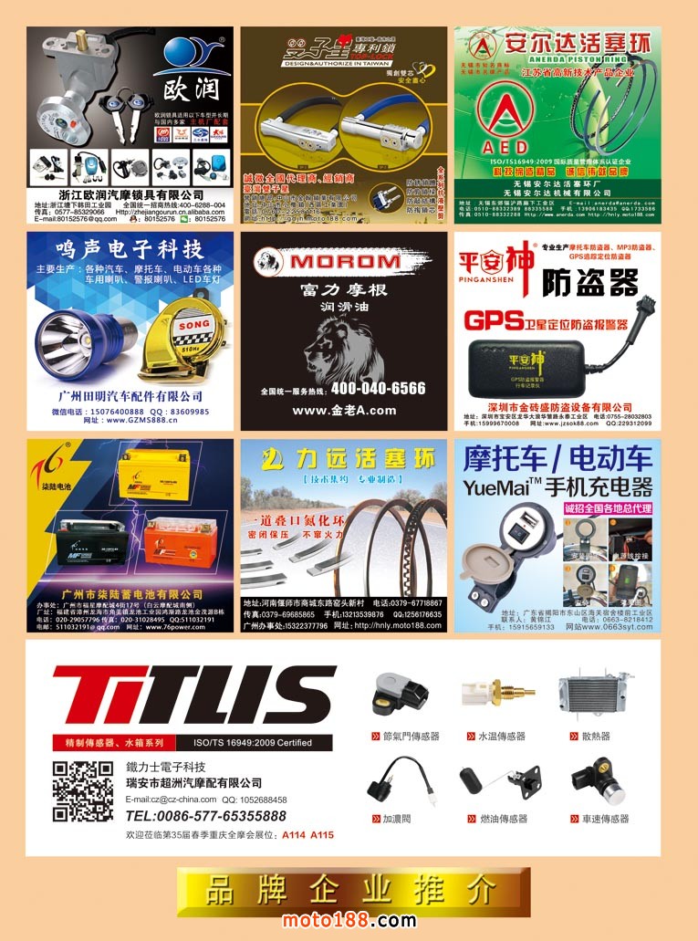 今年第四期雜志雖然在全國市場都有發行,一些不在市場的地區商戶除了通過www.moto188.com網站閱讀,也可到我們展位直接領取。由于本期雜志需要宣傳的企業較多,原來的摩托車及電動車行業的資訊的內容,順延到下一期發布。