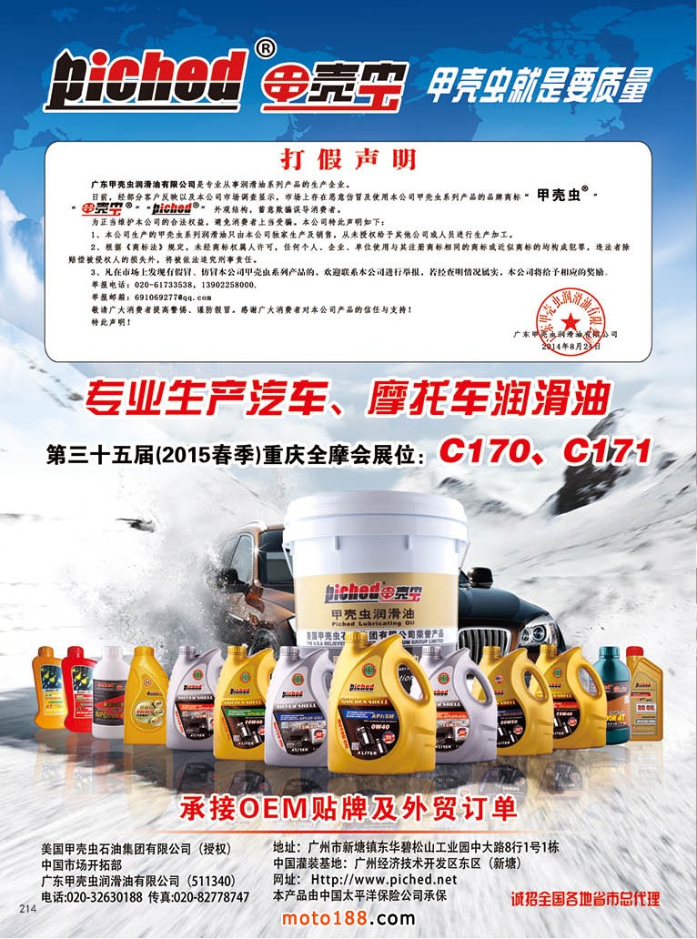 今年第四期雜志雖然在全國(guó)市場(chǎng)都有發(fā)行,一些不在市場(chǎng)的地區(qū)商戶除了通過www.moto188.com網(wǎng)站閱讀,也可到我們展位直接領(lǐng)取。由于本期雜志需要宣傳的企業(yè)較多,原來的摩托車及電動(dòng)車行業(yè)的資訊的內(nèi)容,順延到下一期發(fā)布。