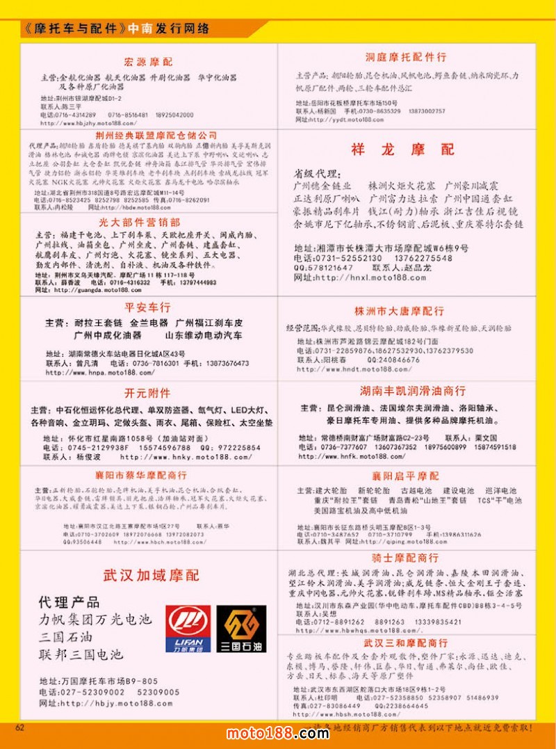 今年第十期雜志雖然在全國市場都有發(fā)行,一些不在市場的地區(qū)商戶除了通過www.zjsoxnet.com網(wǎng)站閱讀,也可到我們展位直接領取。由于本期雜志需要宣傳的企業(yè)較多,原來的摩托車及電動車行業(yè)的資訊的內容,順延到下一期發(fā)布。