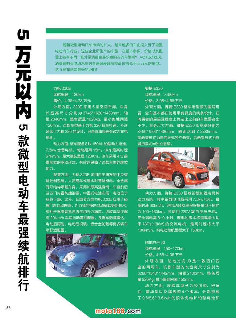內56 5萬元以內 5款微型電動車最強續航排行