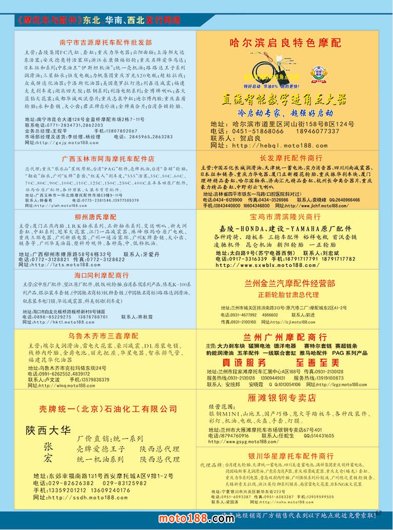 明年的中國經濟會如何?可能連國家領導人都無法預測,但作為我們應該未雨綢繆做好應對市場的變化,我們加強和完善了對市場發行的工作,調整了工作重點,有計劃有目的的開展各項工作,在廣州市場增加了發行力量,安排專人每期上門投放。今冬明春我們還將完成對華北和東北市場的信息采集工作,明年春天的《北方市場指南》,將在哈爾濱春季全摩會會上發放,這本書完成后,這一個系列即第二次升級版也全部完成了。