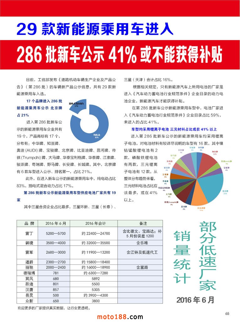 內(nèi)65 部分低速?gòu)S家6月份銷量統(tǒng)計(jì)