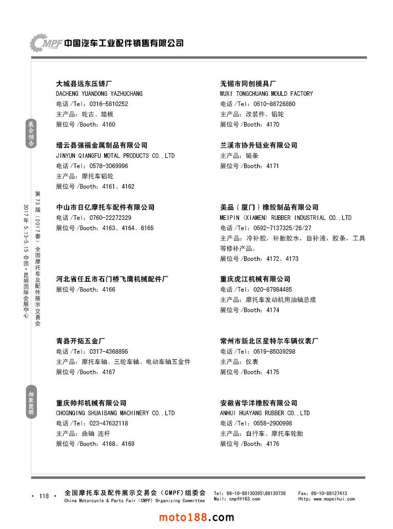 第36屆秋季(廣州)全國摩托車及配件展示交易會參展企業名錄