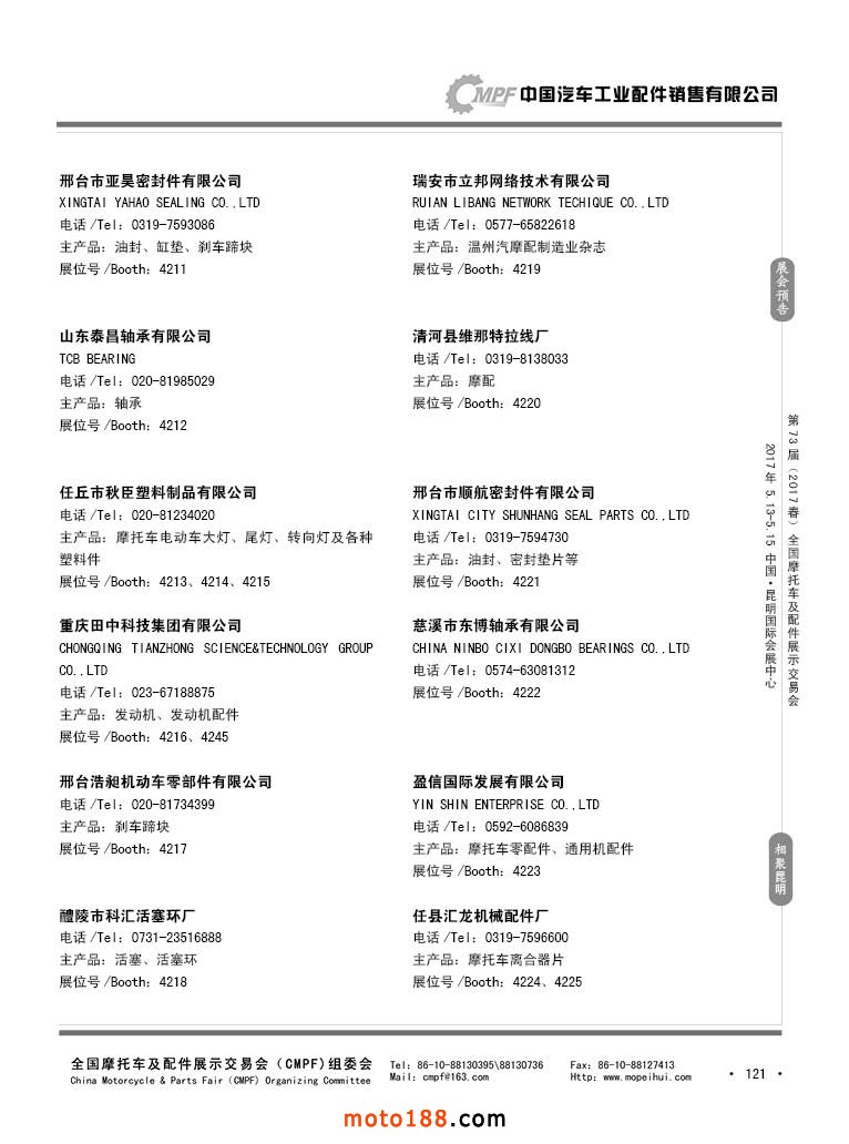 第36屆秋季(廣州)全國摩托車及配件展示交易會(huì)參展企業(yè)名錄