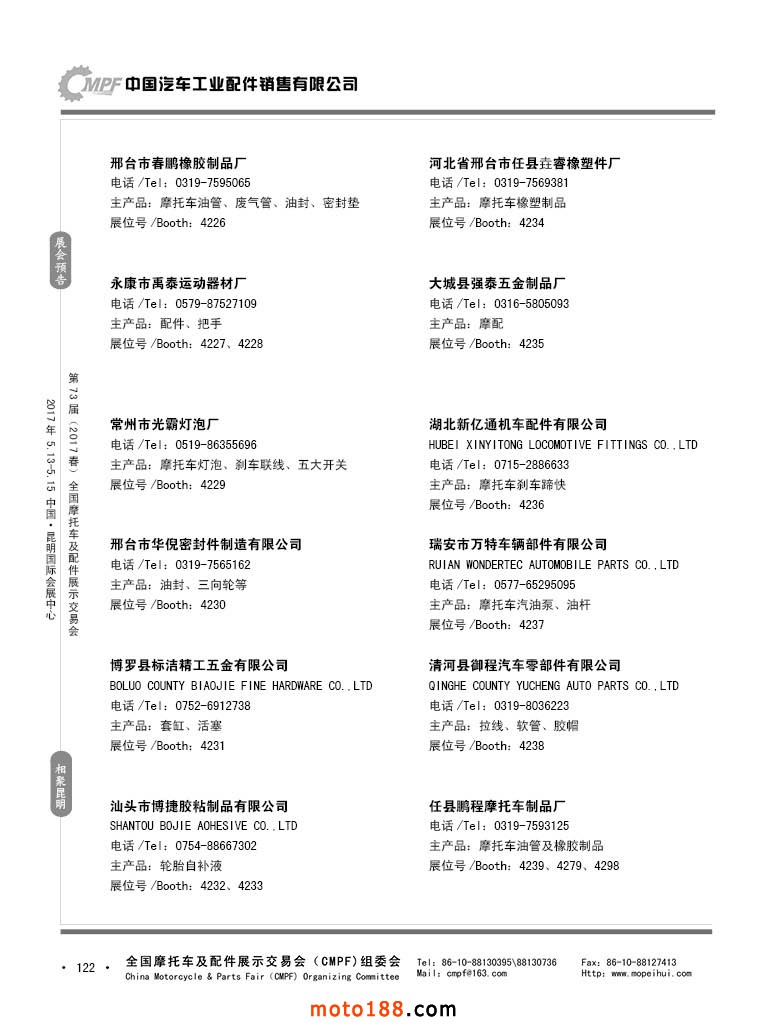 第36屆秋季(廣州)全國摩托車及配件展示交易會參展企業名錄