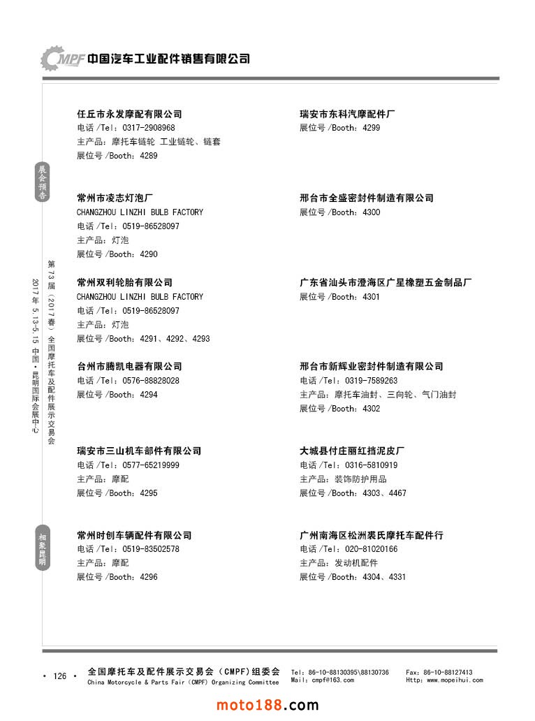 第36屆秋季(廣州)全國摩托車及配件展示交易會參展企業名錄