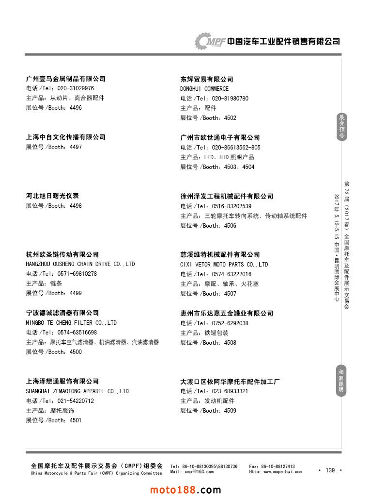 第36屆秋季(廣州)全國摩托車及配件展示交易會參展企業名錄