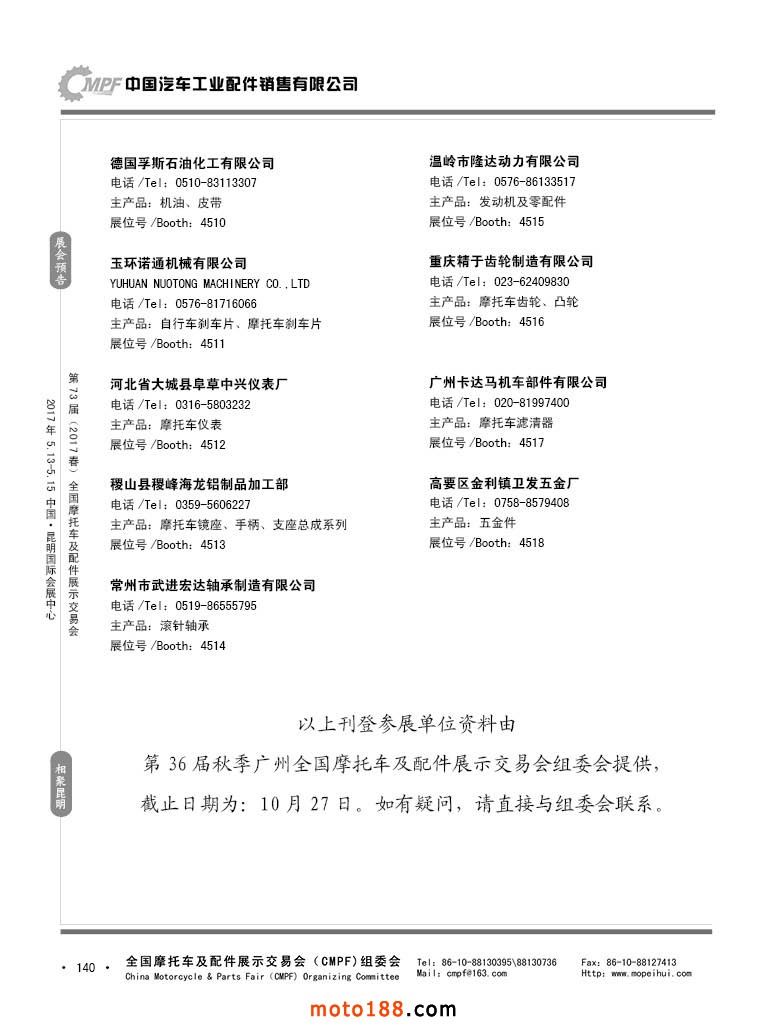 第36屆秋季(廣州)全國摩托車及配件展示交易會參展企業名錄