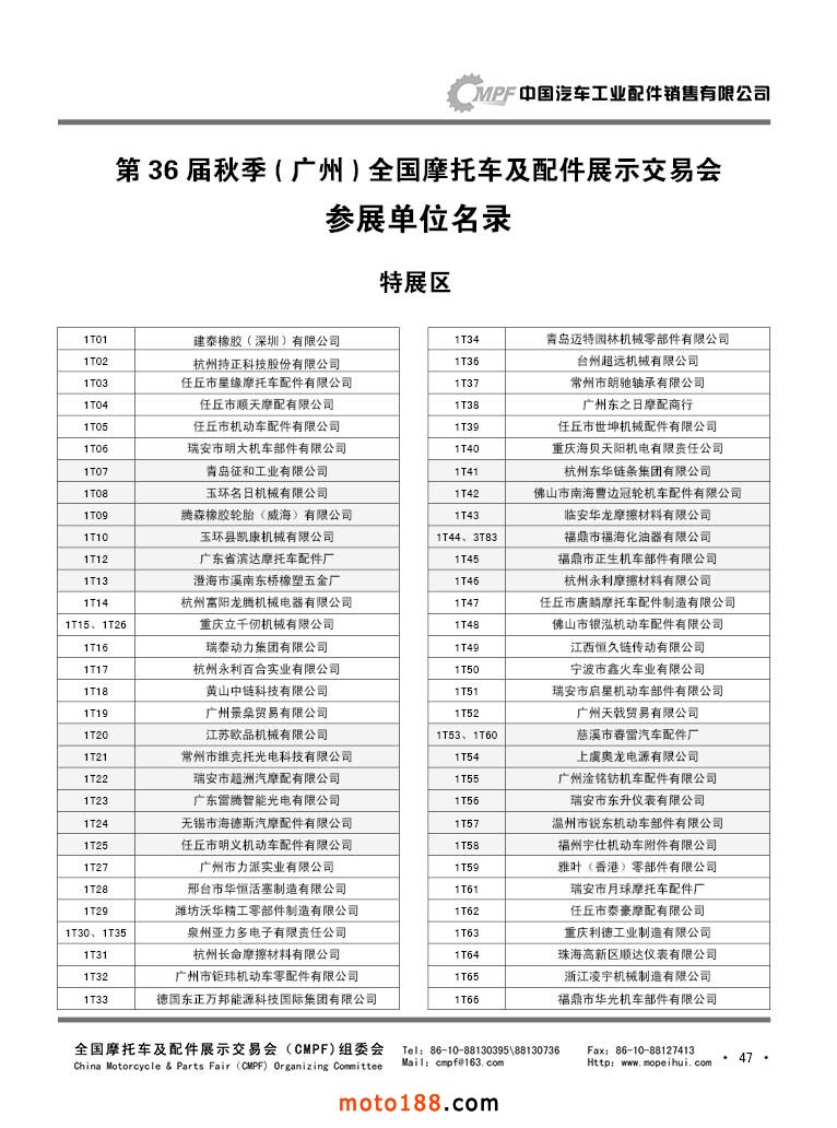 第36屆秋季(廣州)全國摩托車及配件展示交易會參展單位名錄