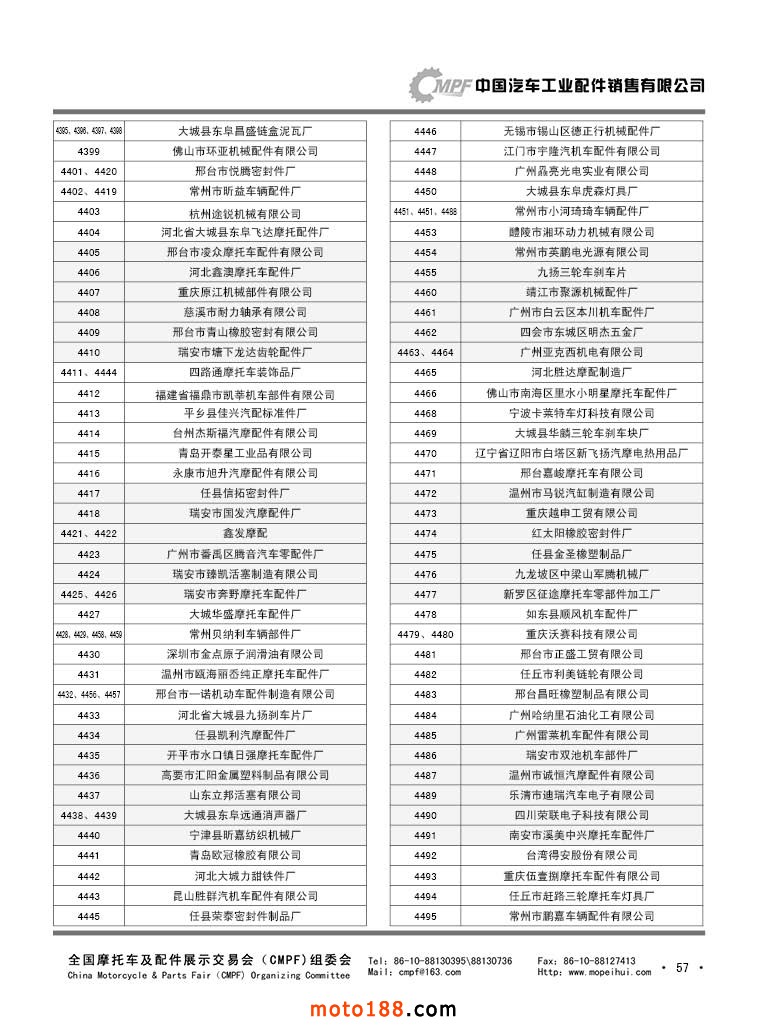 第36屆秋季(廣州)全國摩托車及配件展示交易會參展單位名錄